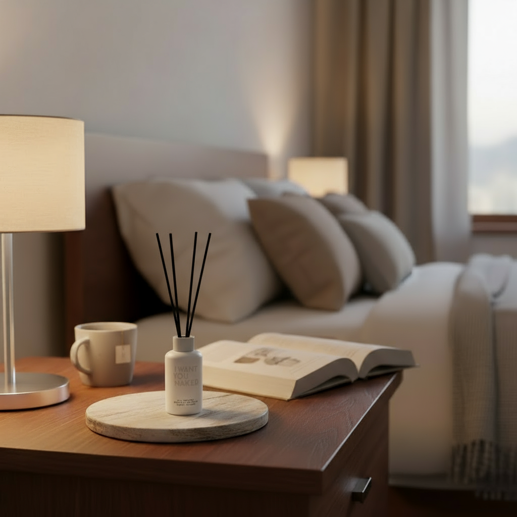 Rein natürlicher Raumduft in matt lackierter Glasflasche