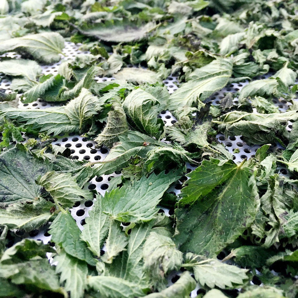 Mit Brennnessel, Brennnesselsamen, Kornblume, Hortensie, Zitronenverbene und Ingwer.
