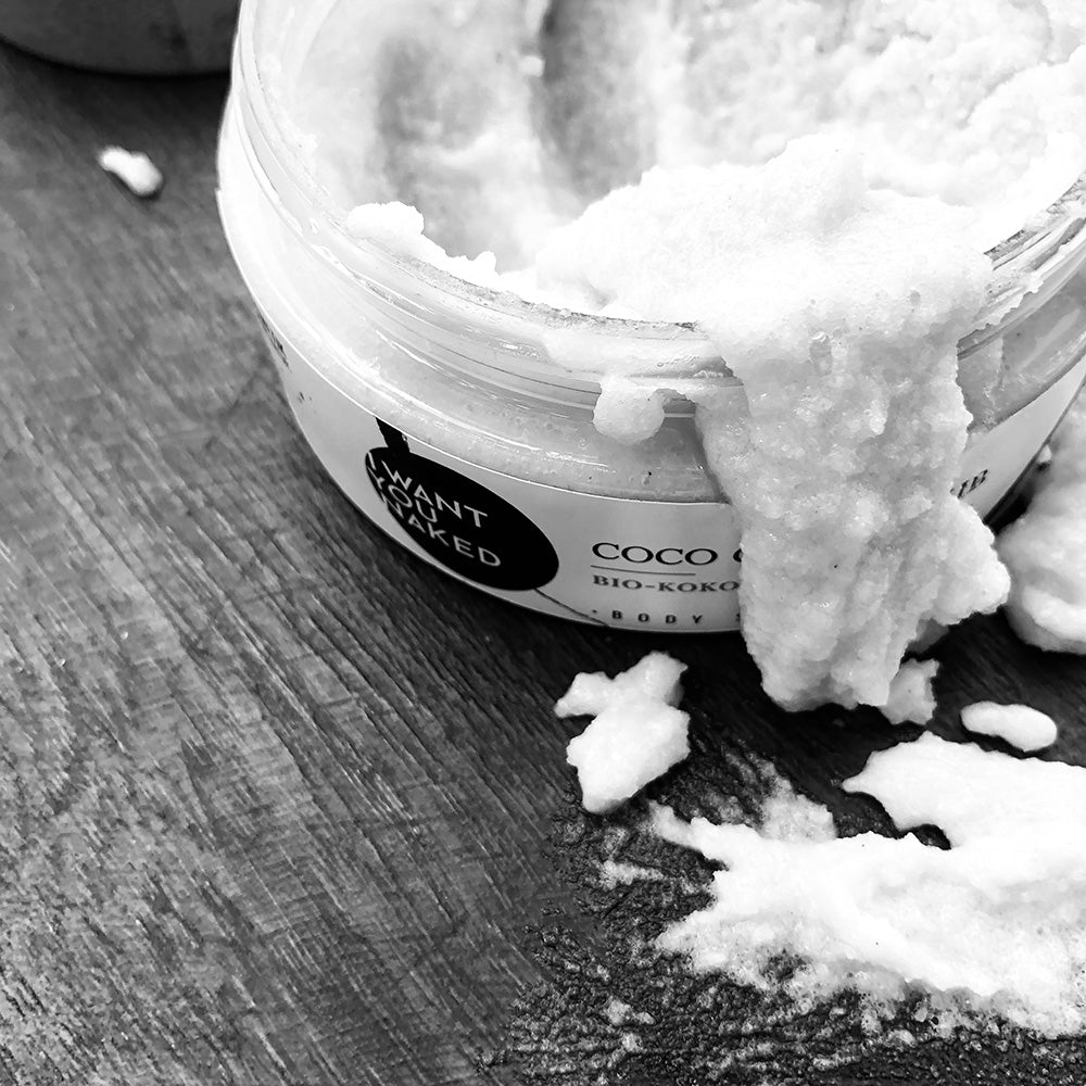 Le sel marin fin nettoie et lisse en douceur. L'huile de coco biologique pénètre profondément dans la peau, a un effet anti-inflammatoire, renforce, hydrate et raffermit.